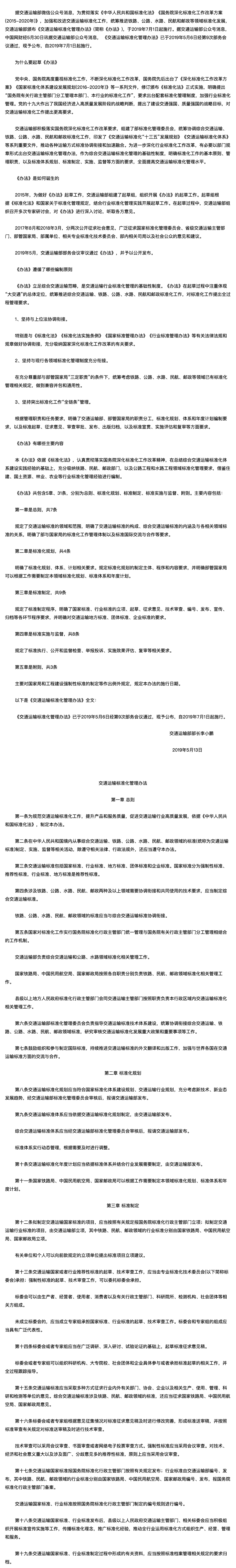 交通運輸部:7月1日《交通運輸標準化管理辦法》正式施行